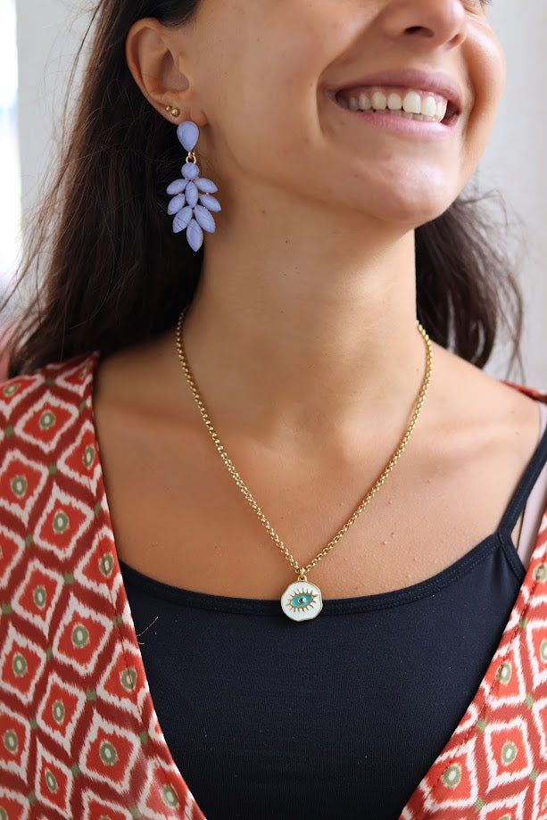 Colar handmade de pedras com medalha esmaltada "blueyes"